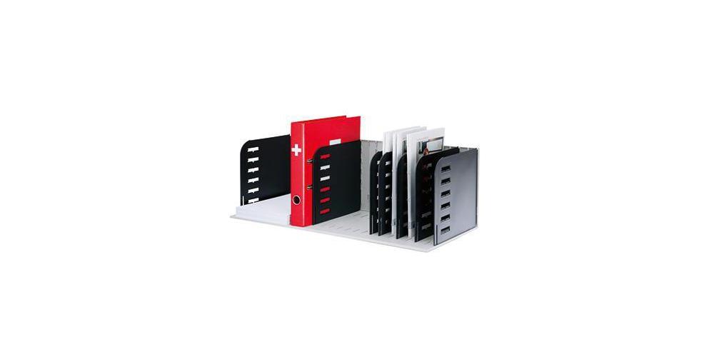Der vertikale Feinraster von 2,5 cm erlaubt eine optimale Ausnutzung der Plattform. Es lassen sich somit auch dünne Dossiers · Prospekte und Schnellhefter ohnen Durchbiegen ablegen! Nachträglich erweiterbar mit bis zu 17 zusätzlichen Trennwänden senkrecht oder Tablare waagerecht · einfache Steckmontage (ohne Werkzeug).Attribute