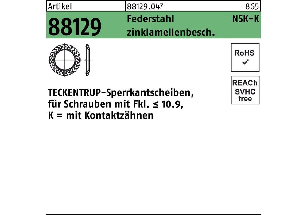 Artikel 88129 Federstahl Form K zinklamellenbesch. TECKENTRUP-Sperrkantscheiben NSK für Fkl. bis 10.9 · mit Kontaktzähnen - Abmessung: NSK-K 4 VE=S (1000 Stück )Weitere technische Eigenschaften: