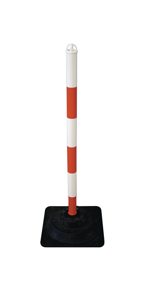 aus Kunststoff · Pfosten Ø 40 x H 860 mm · Fuß 290 x 290 mm, Hartgummi · Pfosten rot/weiß · mit Ösen am PfostenkopfWeitere technische Eigenschaften:
