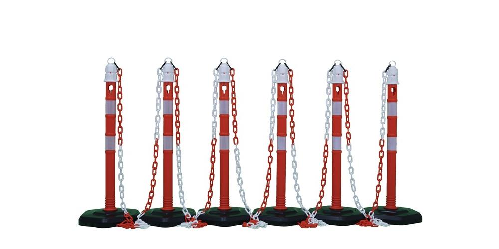 TEMKA GmbH Sperrpfostenset PPC rot/weiß mit Sechskantfuß D63xH1000mm 6 Pfosten und 5 Ketten