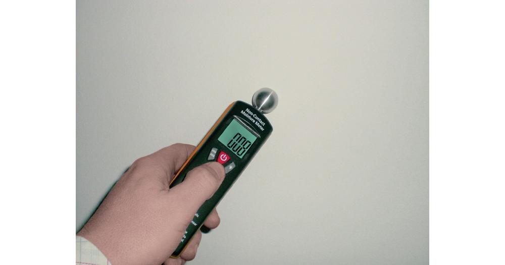zur Feuchtemessung von Holz und Baustoffen · einfach das Messobjekt mit der Messkugel berühren · misst bis zu einer Tiefe von 40 mm · Max./Min.-Funktion · Messprinzip kapazitiv · inkl. 9 V BlockbatterieHinweis zur Entsorgung von Batterien und Akkus