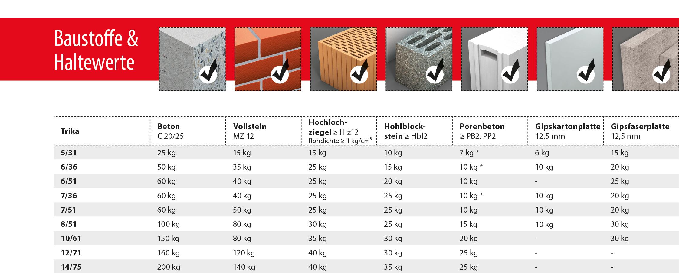 - Mindest-Schraubenlänge = Dübellänge + Anbauteildicke + 5 mm