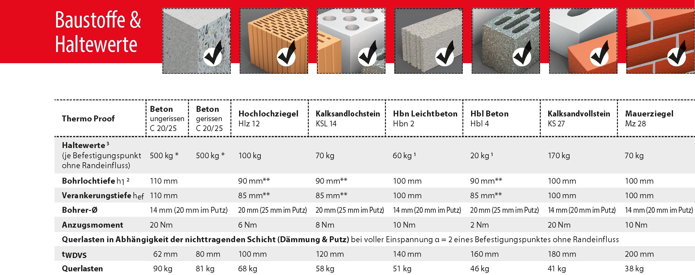 Thermo Proof ist ein Schwerlast-Abstandsmontagesystem für wärmegedämmte Fassaden (WDVS) bestehend aus: