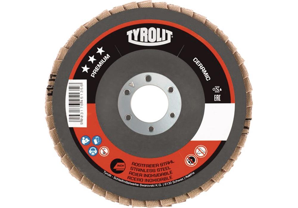 TYROLIT Fächerscheibe PREMIUM CERAMIC Ø 125 mm Körnung 60 gekröpft Rostfreier Stahl CA