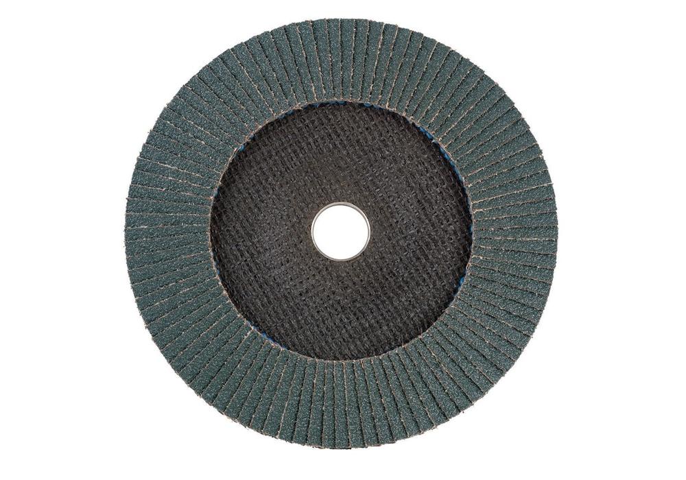 2in1 Fächerscheibe mit einer sehr hohe Lebensdauer und einem sehr guten spezifischen Abtrag · zur Anwendung auf verschiedenen Stahl- und Edelstahlqualitäten · Bohrung 22,23 mm ØWeitere technische Eigenschaften: