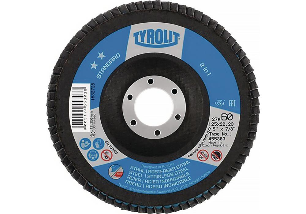 TYROLIT Fächerscheibe STANDARD Ø 125 mm Körnung 60 konisch Stahl, Edelstahl ZA - Zirkonkorund