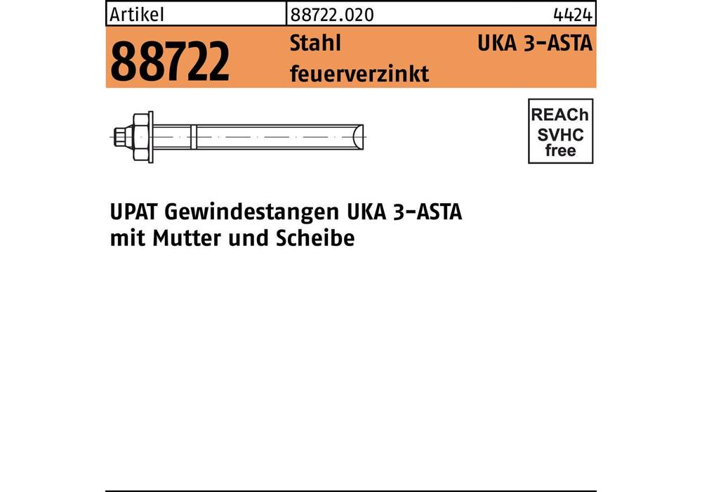 Artikel 88722 Stahl UKA 3-ASTA feuerverzinkt UPAT Gewindestangen UKA 3-ASTA mit Mutter und Scheibe - Abmessung: ASTA M 12x160 VE=S (10 Stück)Weitere technische Eigenschaften: