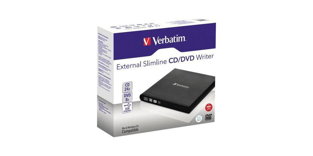 Verbatim Laufwerk extern Slimline CD/DVD 146 x 17 x 146 mm (B x H x T) USB 2.0 M-DISC Archivmedien Windows® Mac universell inkl. Schnellstartanleitung schwarz