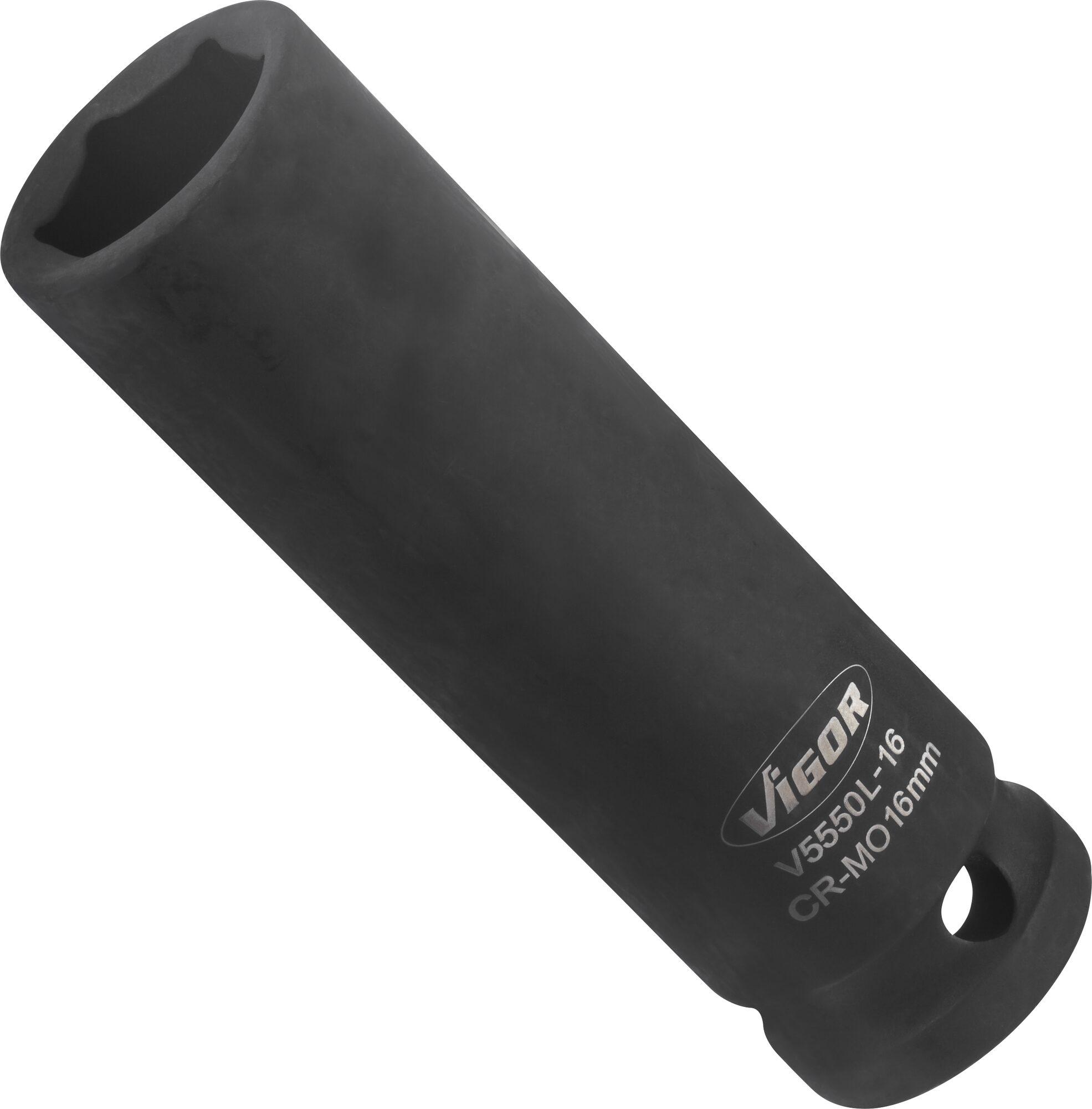VIGOR Schlagschrauber Steckschlsseleinsatz lang V5550L-16 1/2 Zoll (12,5 mm) Vierkant hohl Auen Sechskant Profil SW 16 mm