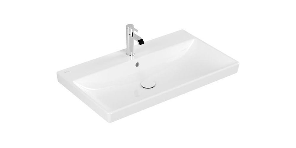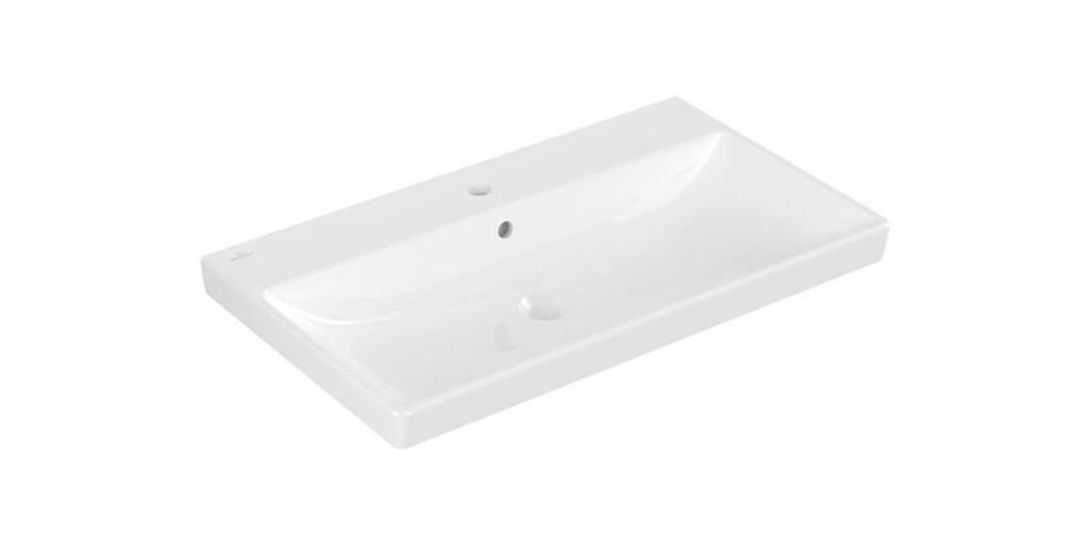 Villeroy & Boch Avento · Schrankwaschtisch · Sanitärkeramik · Maße: 800 x 470 mm · Rechteck · für 3·Loch Armatur geeignet · mittleres Hahnloch durchgestochen · mit Überlauf · EN 31 · EN 14688 · im Lieferumfang: 1 x Schrankwaschtisch · Optional erhältlich: Ablaufventile mit keramischer Abdeckung · 01 Weiß Alpin