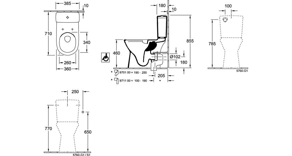 Villeroy & Boch ViCare · Tiefspül·WC ViCare spülrandlos für Kombination · vorher O.novo Vita · Sanitärkeramik · Maße: 360 x 710 mm · Oval · bodenstehend · Spülwasserbedarf: 3 / 6 l · EN 997 · DIN 18040 · gemäß den Anforderungen der DIN 18040 · Abgang waagerecht · Abgang senkrecht möglich durch Vario·Abflussbogen · im Lieferumfang: 1 x Tiefspül·WC spülrandlos · 1 x Befestigungssatz · Bitte WC·Sitz separat bestellen · Bitte Spülkasten separat bestellen · 01 Weiß AlpinWeitere technische Eigenschaften: