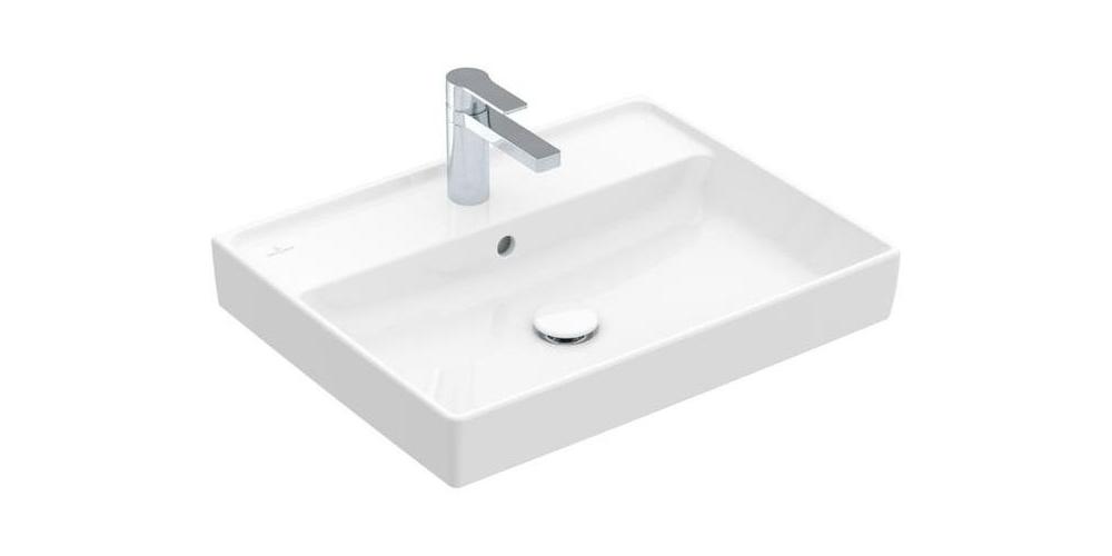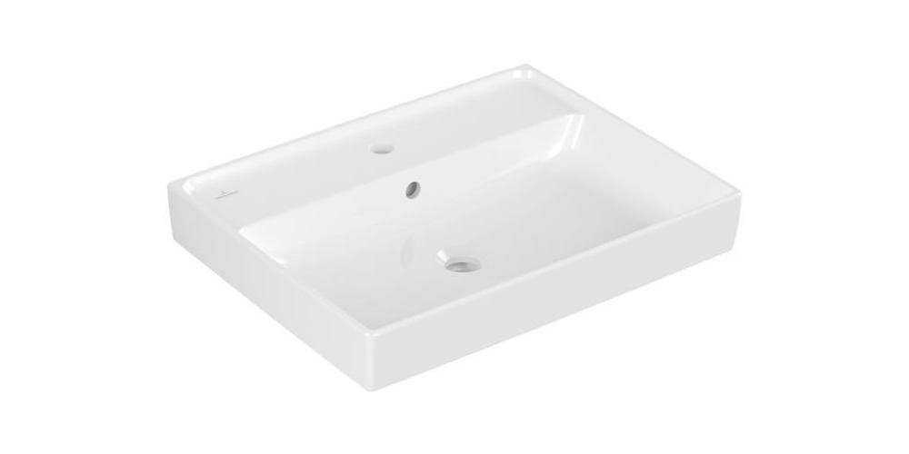 Villeroy & Boch Collaro · Waschbecken · TitanCeram · Maße: 600 x 470 mm · Rechteck · für 3·Loch Armatur geeignet · mittleres Hahnloch durchgestochen · mit Überlauf · EN 31 · EN 14688 · im Lieferumfang: 1 x Waschbecken · Optional erhältlich: Ablaufventile mit keramischer Abdeckung · 01 Weiß Alpin