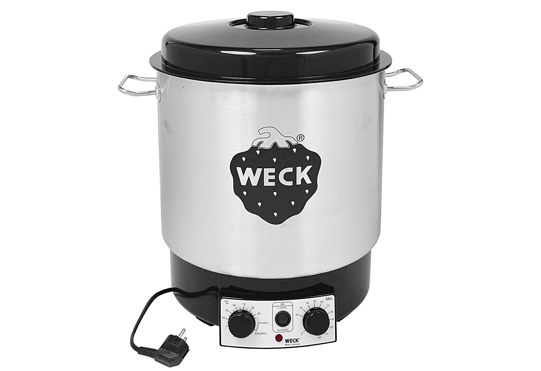Edelstahl 18/10, gebürstet, mit Einlegerost aus hochwertigem, kochfestem, lebensmittelechtem Kunststoff, geschlossener Topfboden, Edelstahl-Kaltgriffe, Deckel und Unterteil aus Kunststoff, Präzisionsthermostat, Überhitzungsschutz, Entsafterschaltung, Kontrolllampe mit Synchronzeitschaltuhr (schaltet erst ein, wenn die Temperatur erreicht ist), für 14 Gläser je 1 l, 230 V / 1800 WattAttribute