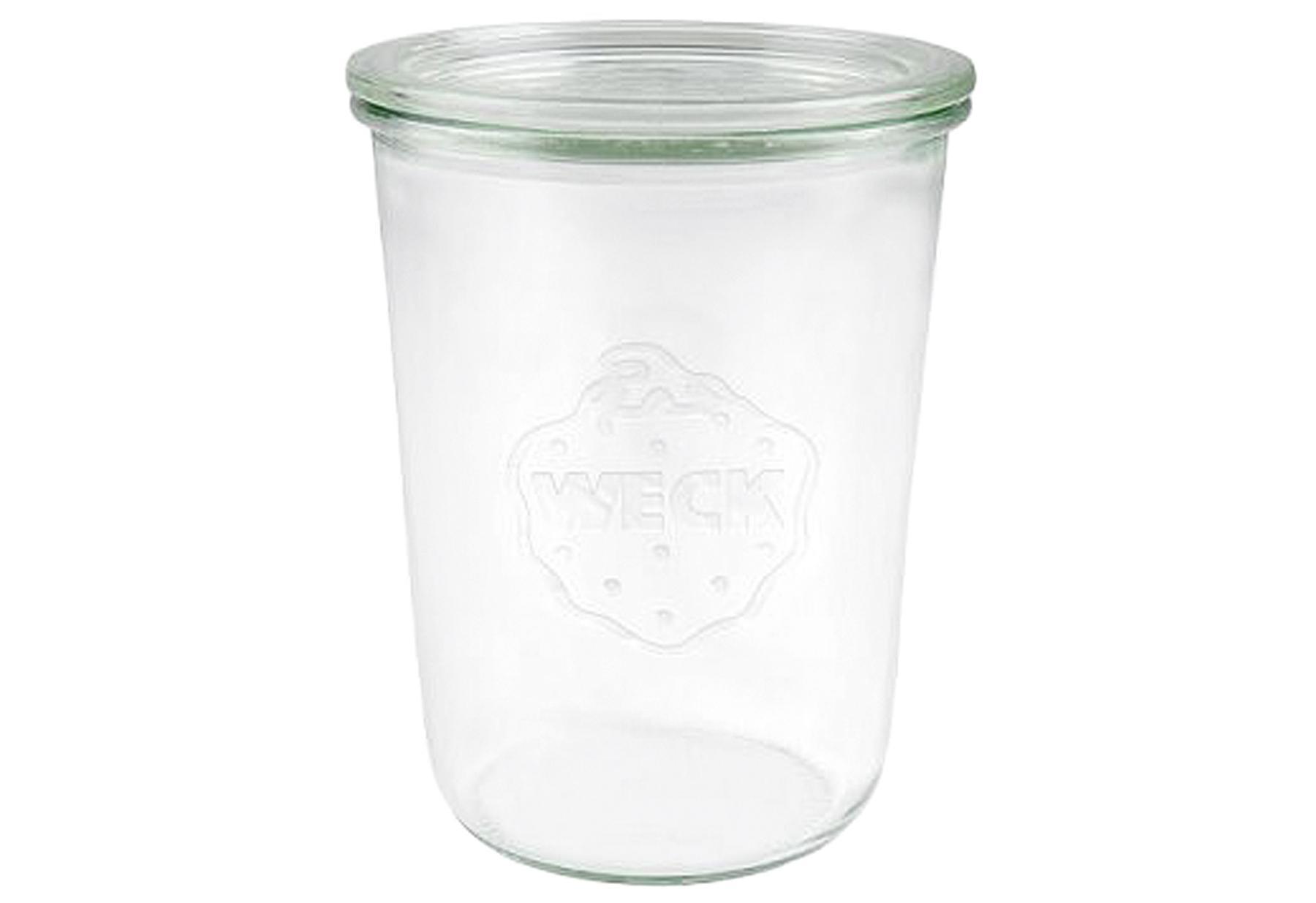 WECK Glas, Sturz-Form 850 ml = 3/4 L, RR 100, inkl. Glasdeckel, Karton à 6 Stück, spülmaschinenfest, zum Einfrieren geeignet, Temperaturbeständig bis zu über 200 °C (Temperaturunterschiede ab 50°C vermeiden).Lieferumfang: