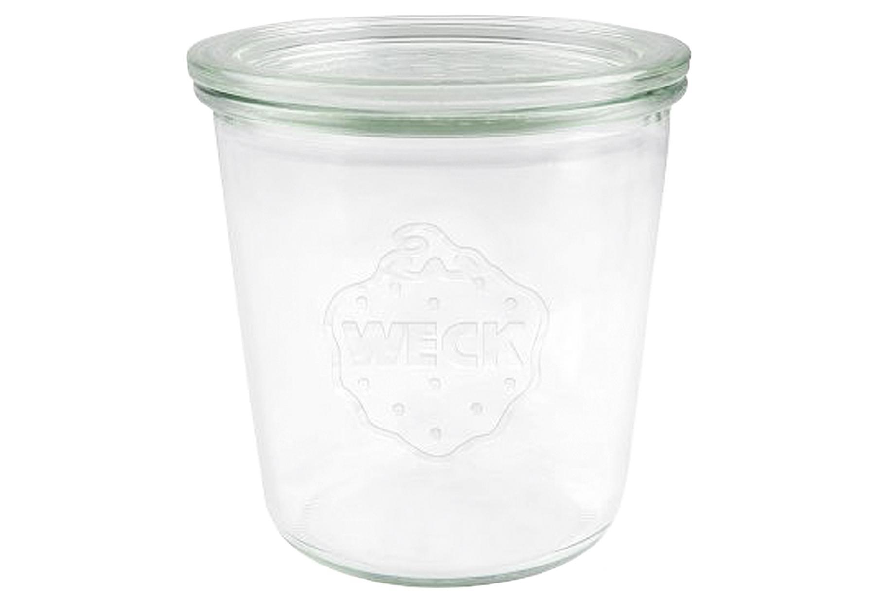 WECK Glas, Sturz-Form 580 ml = 1/2 L, RR 100, inkl. Glasdeckel, Karton à 6 Stück, spülmaschinenfest, zum Einfrieren geeignet, Temperaturbeständig bis zu über 200 °C (Temperaturunterschiede ab 50°C vermeiden).Lieferumfang: