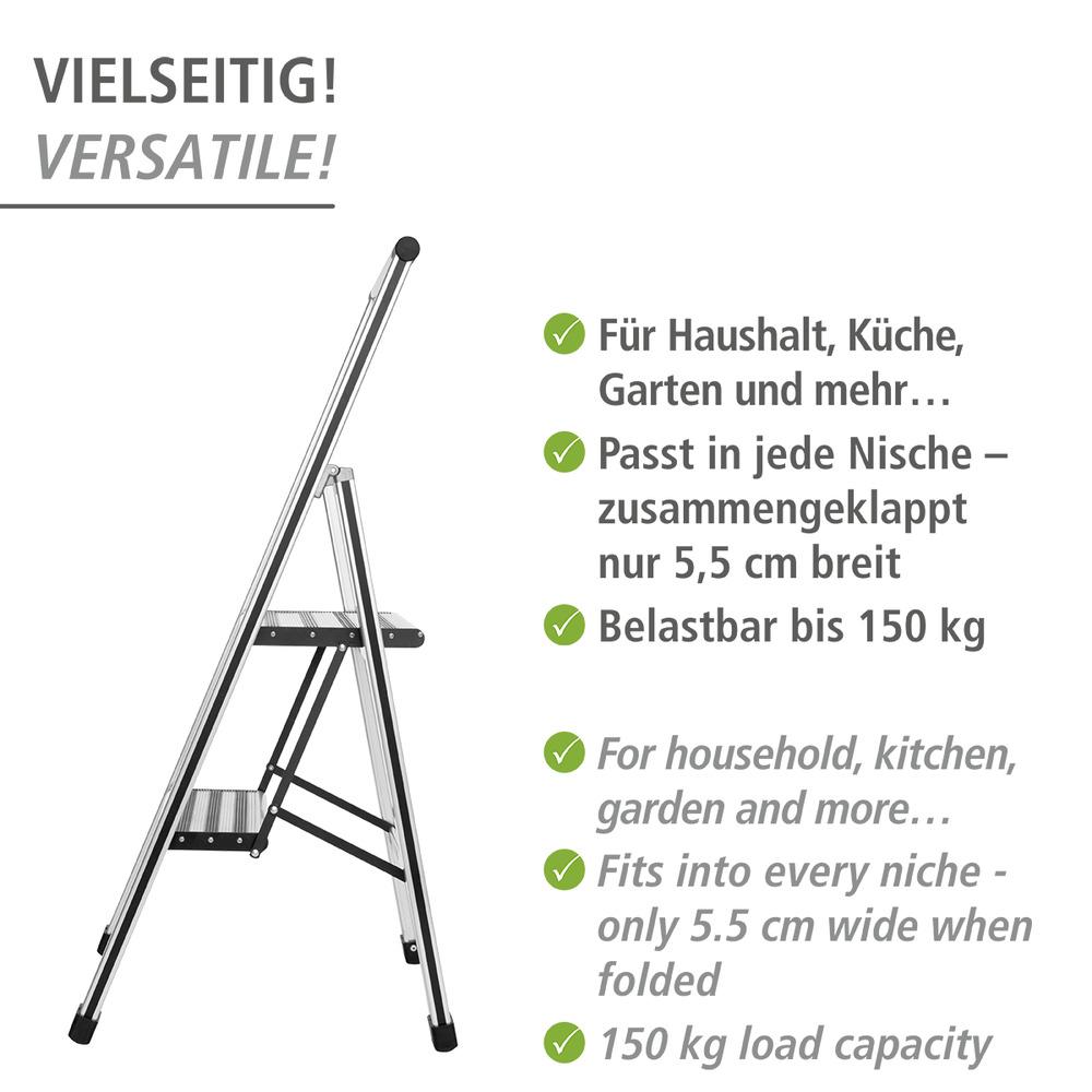 WENKO Alu-Design Klapptrittleiter 2-stufig Silber