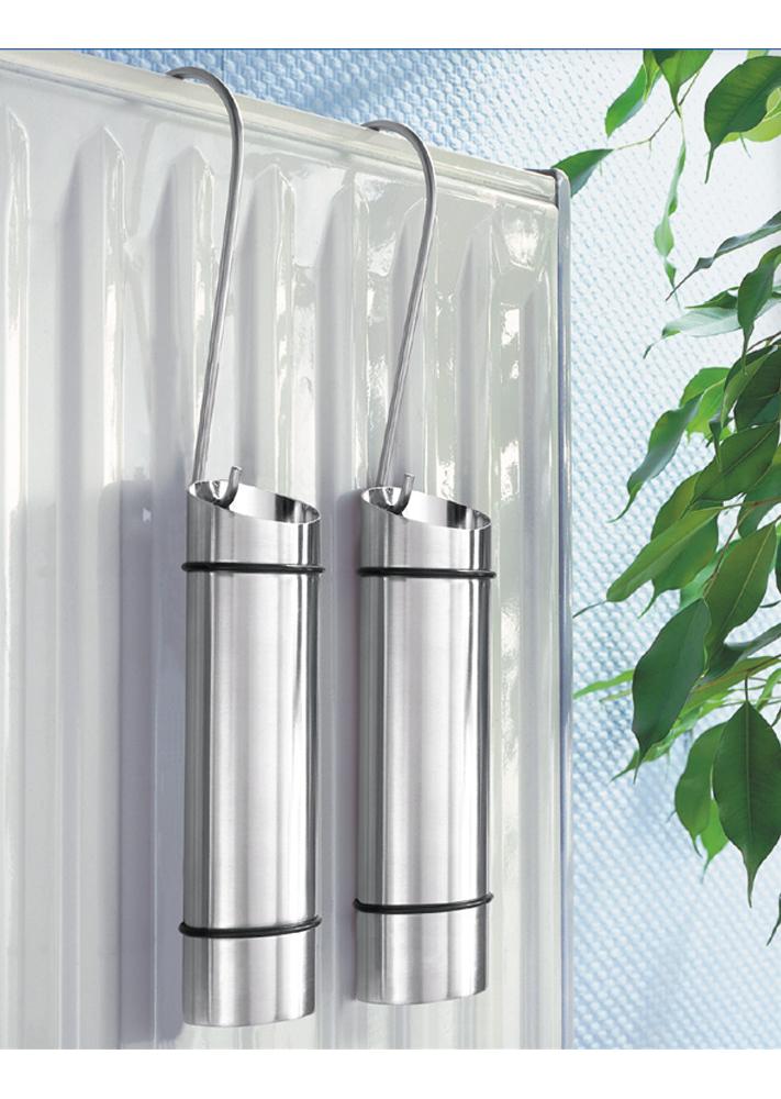 Der hochwertige Luftbefeuchter aus matt gebürstetem Edelstahl spendet gerade während der Heizperiode genügend Luftfeuchtigkeit und sorgt so für ein angenehmes und gesundes Raumklima. Der Verdunster wird einfach über den Heizkörper gehangen und mit Wasser befüllt. Er ist für alle Heizkörpertypen geeignet. Die beiden praktischen Schutzringe aus Gummi schonen den Heizkörper. Die Metallaufhängung für Rippen- und Flachheizkörper wird mitgeliefert. Der formschöne Luftbefeuchter hat eine Füllmenge von 300 ml.Attribute