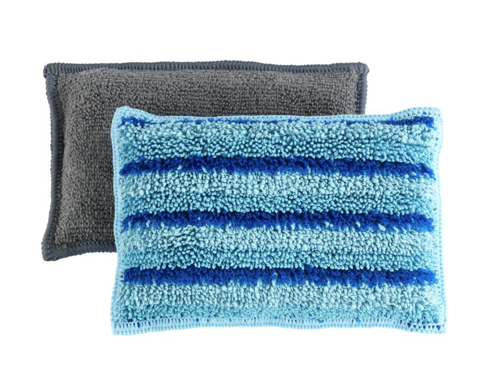 - Spülschwämme ohne Reinigungsmittel verwendbar ·Saugfähige Mikrofaser ·80% Polyester, 20% Polyamid ·Für alle anfallenden Reinigungsarbeiten ·Maschinenwaschbar bis 60 °C ·Farben Grau & Blau ·Maße (BxHxT): je 14x3x9 cm