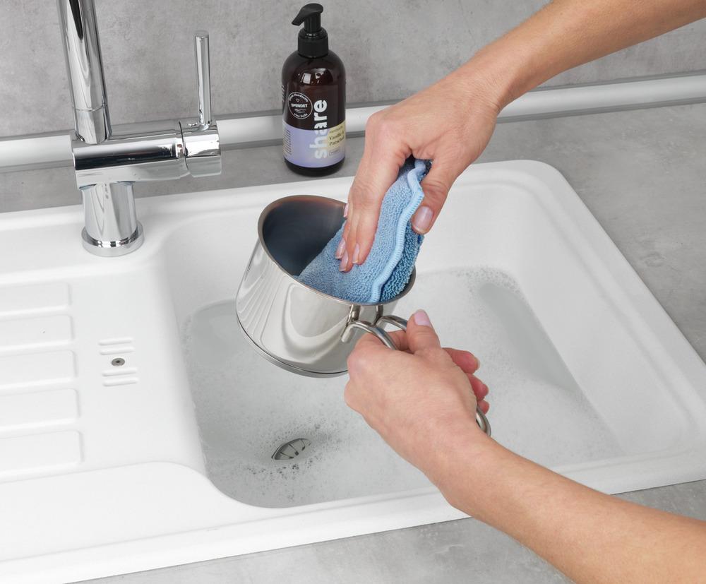 Upgrade für Ihre Küche: Mit dem WENKO Mikrofaser Spülschwamm Miko haben Sie den idealen Haushalts-Schwamm für zu spülende Töpfe, Pfannen, Geschirr, Besteck und Gläser. Der hygienische Geschirrschwamm im praktischen 2er Set ist universell einsetzbar und entfernt professionell Fett, Essensreste, Fingerabdrücke, Verkrustungen etc. Die hochwertige Mikrofaser hat eine enorme Saugfähigkeit, denn sie kann ein Mehrfaches des eigenen Gewichts absorbieren. Der Clou: Zur Reinigung werden keine Reinigungsmittel benötigt – die Schwämme reinigen selbst hartnäckigen Schmutz mühelos nur mit Wasser. Das schont die Umwelt und den Geldbeutel. Im trendigen Grau und Blau gehalten machen diese attraktiven Spülschwämme die Küche zu einem wahren Wohlfühlort. Im vielfältigen WENKO Sortiment gibt es zahlreiche passende Küchen-Utensilien, die Ihnen den Abwasch erleichtern. Besonders praktisch: Auch ein Putz-Schwamm verdient eine Reinigung. Bei Bedarf einfach bis 60° C in der Waschmaschine mitwaschen.Eigenschaften: