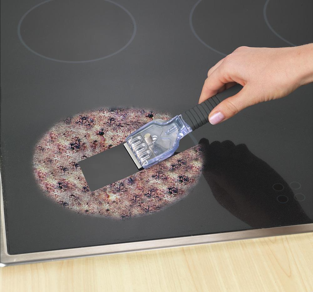 Der handliche Reinigungsschaber Expert entfernt mühelos alle hartnäckigen Verkrustungen und Verschmutzungen auf Glaskeramik-Herden, Glas oder Fliesen. Der praktische Glasschaber reinigt einfach alle glatten Flächen wie Wände, Spiegel, Fenster, Glas und Kochfelder ohne Kratzer. Auch die lästigen Etiketten oder Klebereste werden bequem beseitigt. Zur komfortablen und sicheren Handhabung ist der Herdschaber mit einem rutschfesten Griff und einer zusätzlichen Klingensicherung versehen. Im Lieferumfang sind drei hochwertige Ersatzklingen aus rostfreiem Edelstahl enthalten.Attribute