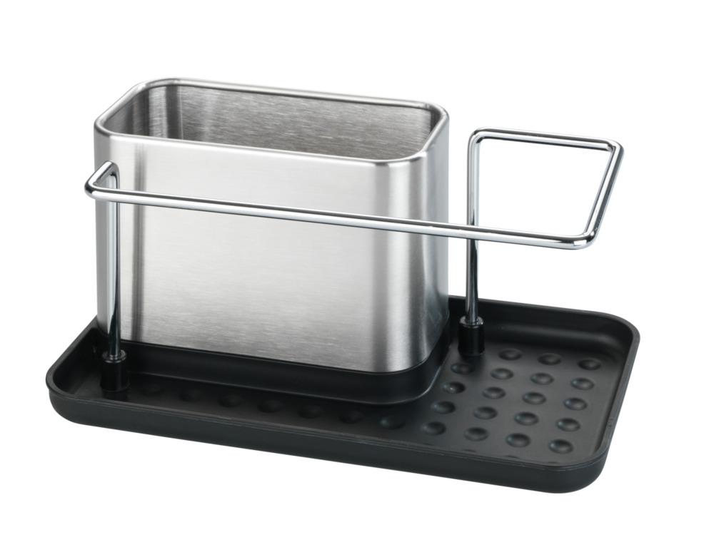 - Praktisches Ordnungssystem für Spülutensilien ·Abnehmbarer, rostfreier Edelstahlbehälter ·Boden aus strapazierfähigem PP, Schwarz ·Flexibel einsetzbar auch in kleinen Küchen ·Gesamtmaße (B x H x T): 21 x 10,5 x 12 cm