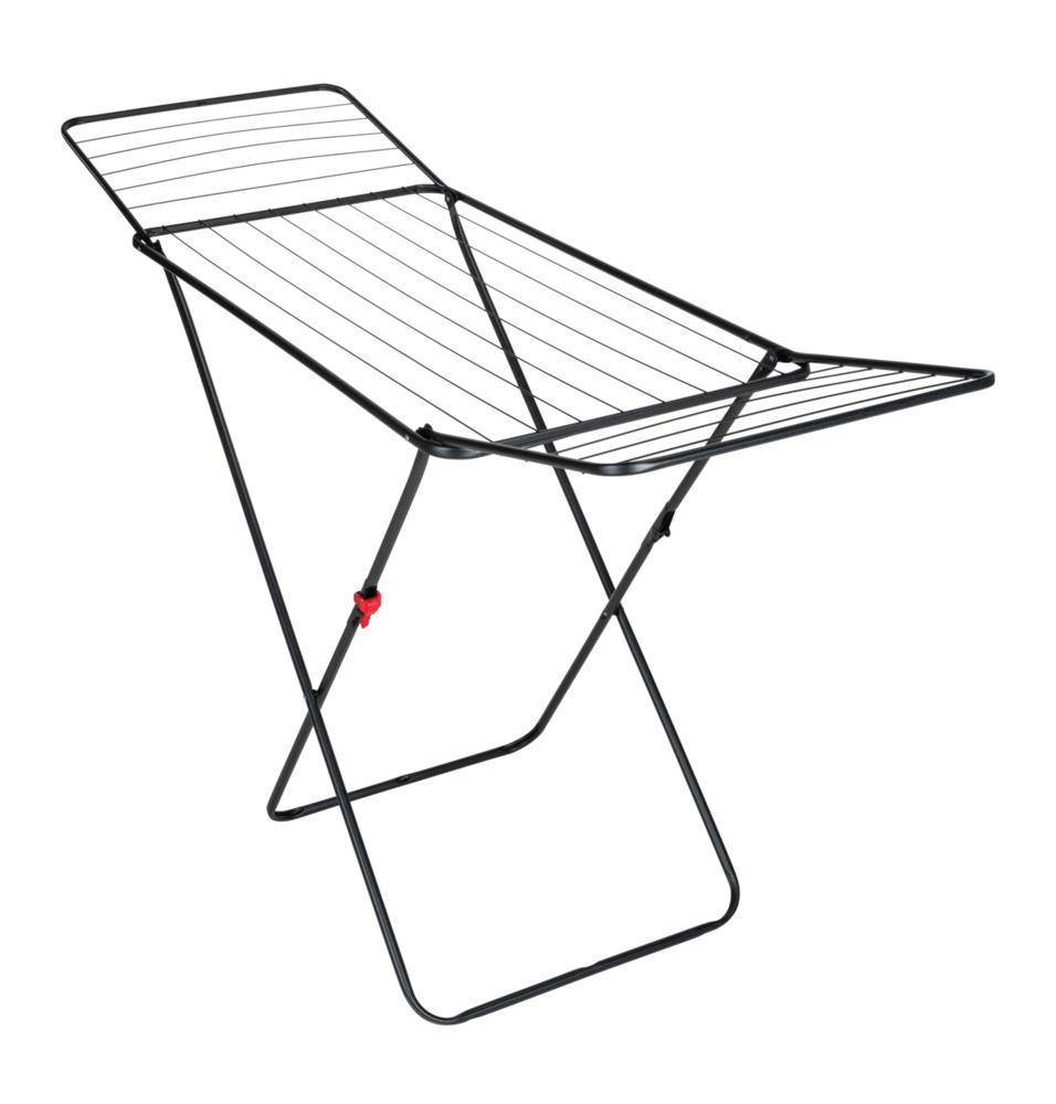 - Wäscheständer Champion von WENKO ·Flügelwäscheständer mit 18 m Trockenlänge ·Pulverbeschichteter Stahl in Schwarz matt ·Platzsparend zusammenklappbar ·Maße (BxHxT) 170x98x55 cm ·Inkl. 4 rutschhemmender Kunststoffkappen, bodenschonend