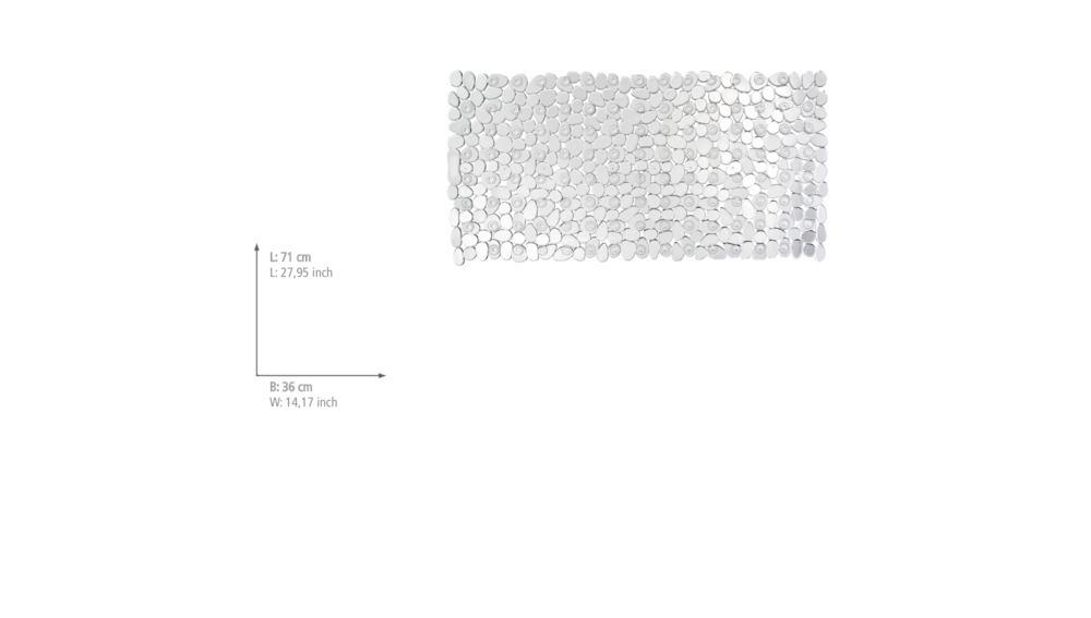 - Dekorative Wanneneinlage in dezentem Transparent ·Mit Saugnäpfen auf der Unterseite für sicheren Halt ·Rutschstopp-Struktur für höchste Sicherheit ·Aus Kunststoff ·Maße (B x T): 71 x 36 cm