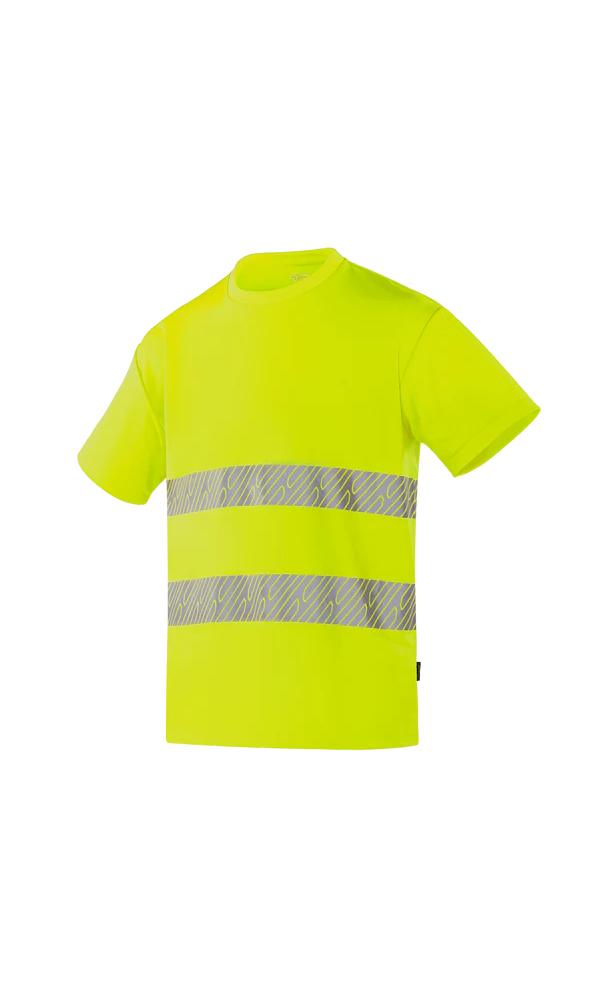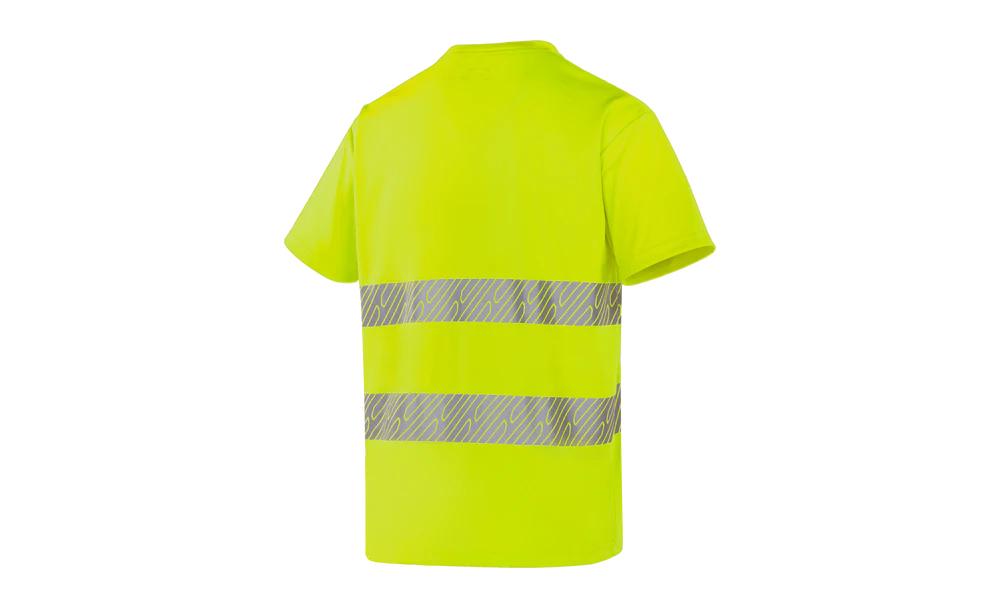 Der gerippte Rundhalsausschnitt und die reflektierenden Thermotransferbänder sorgen für optimale Sichtbarkeit.