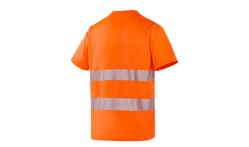 Der gerippte Rundhalsausschnitt und die reflektierenden Thermotransferbänder sorgen für optimale Sichtbarkeit.