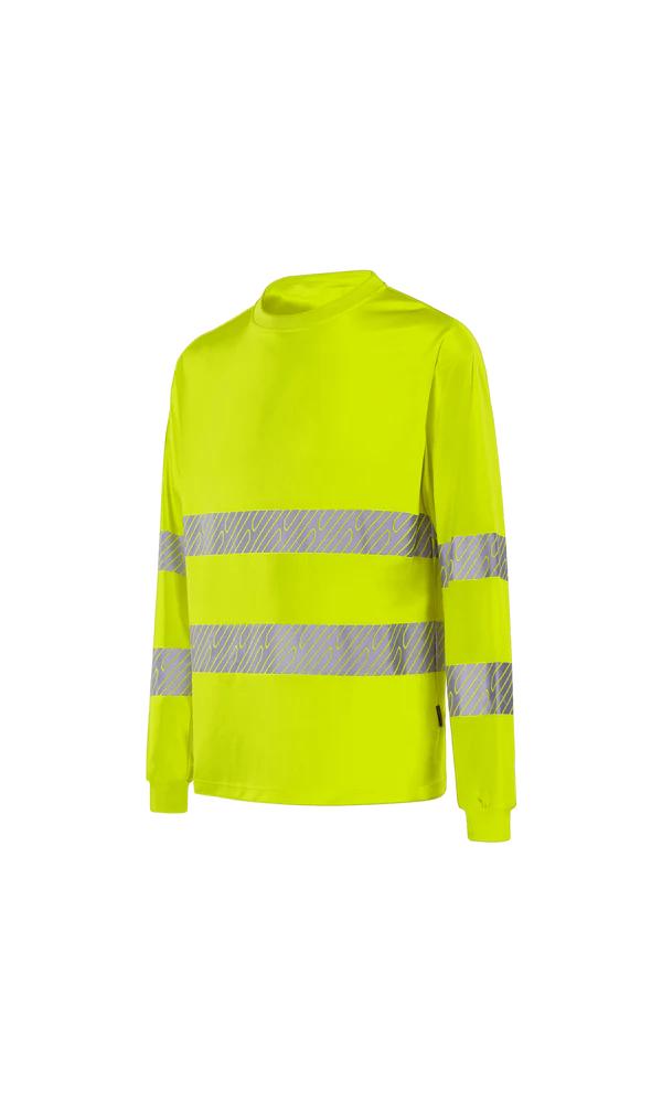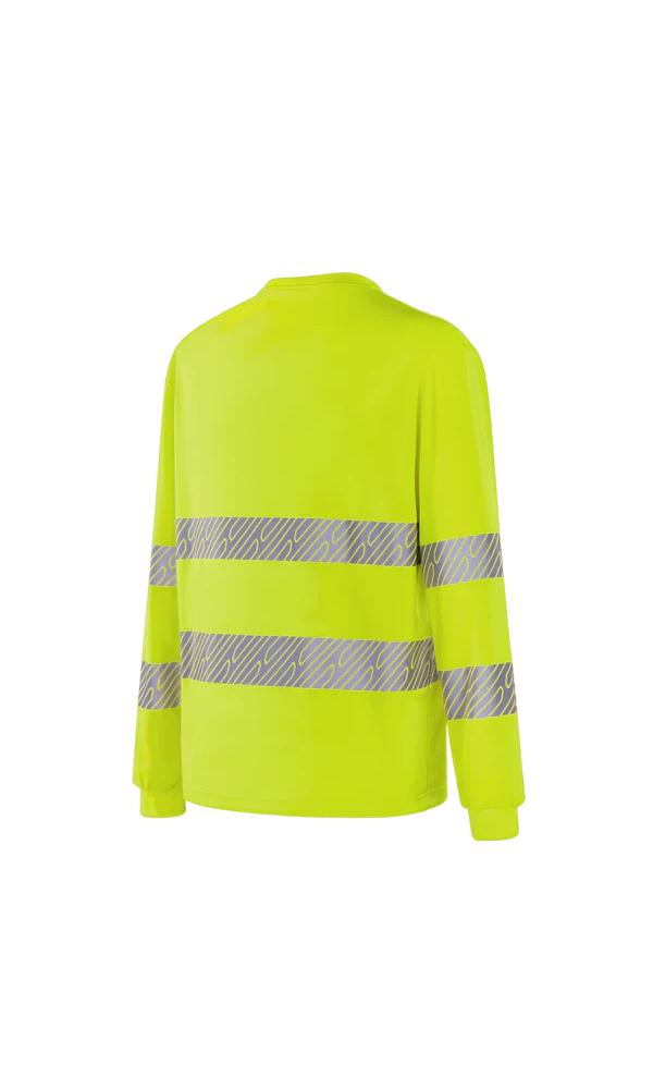 Der gerippte Rundhalsausschnitt und die reflektierenden Thermotransferbänder sorgen für mehr Flexibilität und Sichtbarkeit.