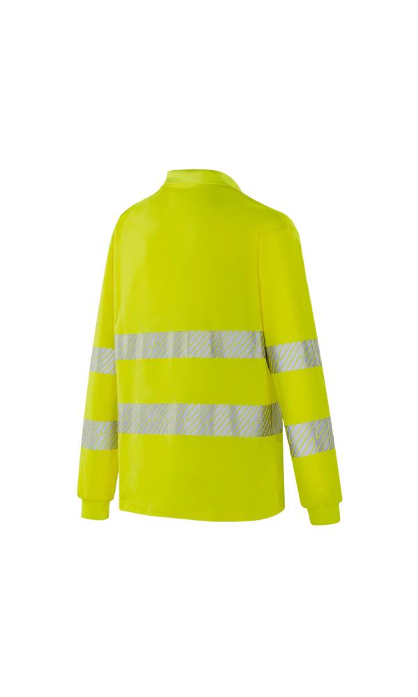 Der erhöhte, gerippte Polokragen und die reflektierenden Thermotransferbänder verbessern die Sichtbarkeit.