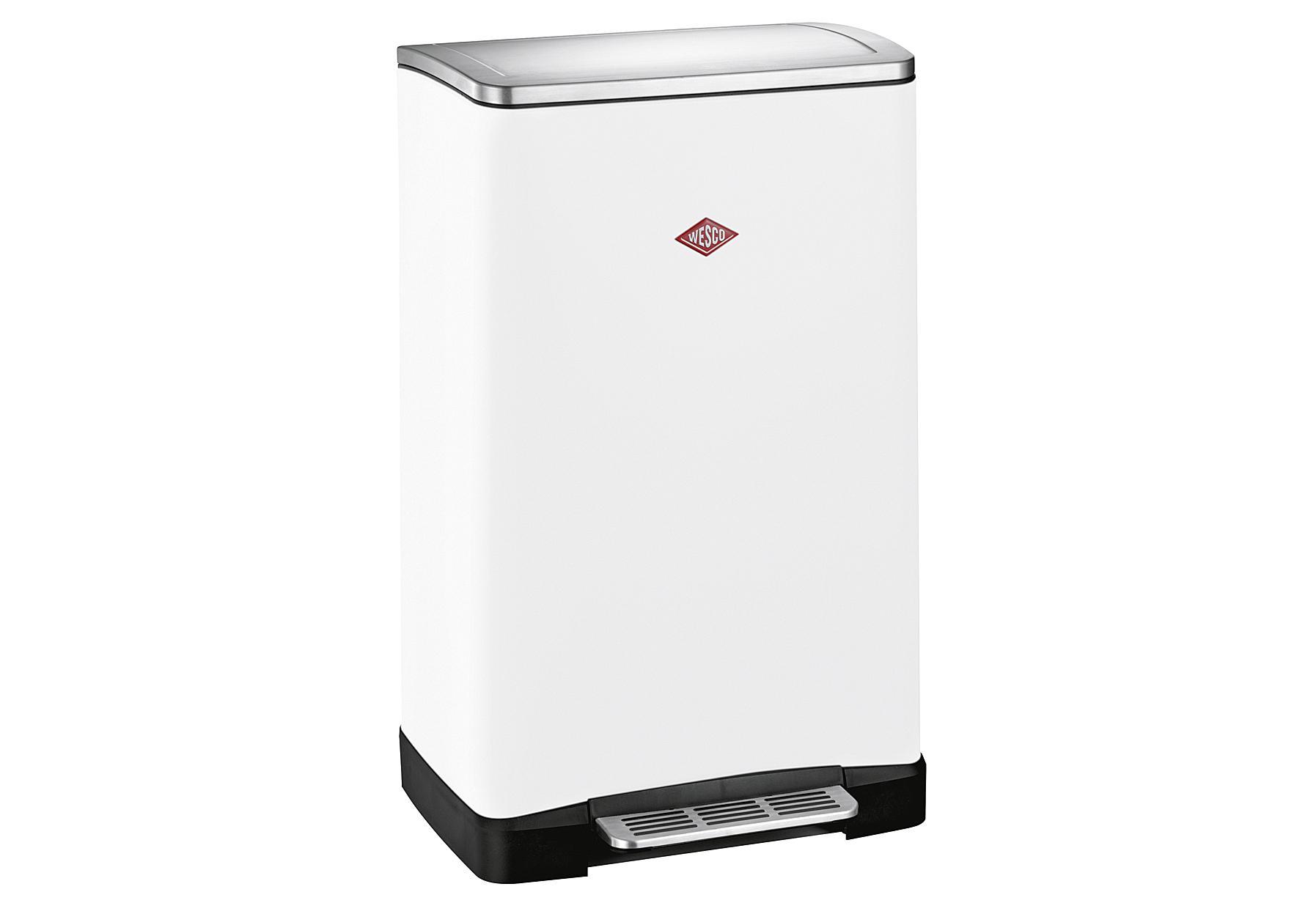 Mülltrennung ist in vielen Haushalten ein wichtiger Bestandteil, um einen Beitrag zum Umweltschutz zu leisten. Für die Trennung größerer Mengen an Abfall eignet sich der Big Double Boy optimal. Der große Mülleimer ist ideal für den Einsatz in der Küche. Der Treteimer hat zwei getrennte 18 l Einsätze, die Sie ganz nach Belieben mit Wertstoffen, Papier, Plastik oder Bio-Müll füllen können. Der Edelstahldeckel schließt dank eines eingebauten Dämpfers nahezu geräuschlos und verschließt den Abfall sicher. Außerdem kann der Deckel in der offenen Stellung arretiert werden. Eine praktische Befestigungsmöglichkeit für Mülltüten an den Kunststoffeinsätzen verhindert ein Herausrutschen des Beutels, sodass nichts daneben gehen kann. Der großzügige Fußtritt aus Edelstahl garantiert problemlose Bedienung und freie Hände, um Müll bequem zu entsorgen. Der Big Double Boy ist ein tolles Mülltrennsystem in stylischer Optik.Farbe: weiß matt. Maße: 36 l, (HxBxT): 65x40,5x34,5 cm.https://naber.com/search?search=8011697