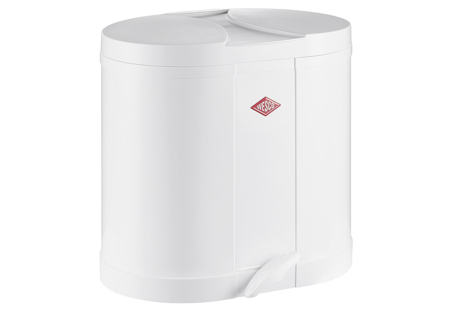 Der Ökosammler 170 vereint praktische Funktionalität und formschönes Design. Er ist für den freistehenden Gebrauch in der Küche vorgesehen und lässt sich beispielsweise neben der Spüle oder unter der Arbeitsplatte platzieren. Mit seiner zeitlosen, silberfarbenen Optik passt der Abfalleimer zu verschiedensten Kücheneinrichtungen. Für eine einfache Trennung von Haushaltsmüll und Biomüll ist er mit zwei Einsätzen ausgestattet, die ein Abfallvolumen von je 15 Litern haben. Ein durchgehender Deckel verschließt den Tretabfalleimer und schützt vor Gerüchen. Durch den Fußtritt lässt sich der Abfalleimer komfortabel ohne Einsatz der Hände bedienen. Mit seinem Korpus aus pulverbeschichtetem Stahlblech und dem Deckel und Tritt aus Kunststoff überzeugt er durch eine langlebige und stabile Qualität. Maße: 30 l, (HxBxT): 43x45x36. Farbe: weiß.