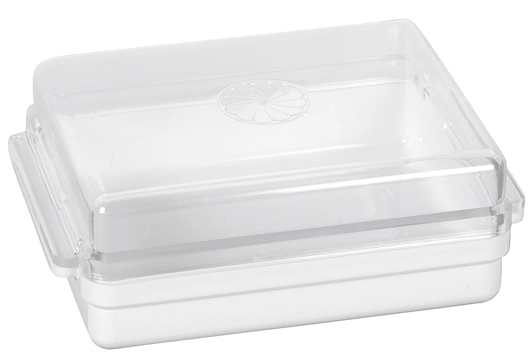 Die praktische Butterdose aus hochwertigem, robustem Kunststoff ist zum Aufbewahren und Servieren von einem 250 g-Stück Butter genau der richtige Helfer. Dank des klaren Deckels hat man einen schnellen Überblick über die verbliebene Butter und der hohe Rand mit handlichen Griffelementen sorgt dafür, dass Sie alles fest im Griff haben. Praktisch: Diese Butterdose passt in die üblichen Halterungen der Kühlschranktüren - für eine platzsparende Aufbewahrung.Attribute
