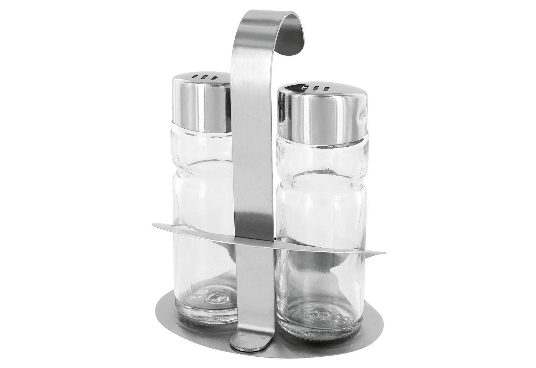 Die Menage Salz & Pfeffer "Wien" im eleganten Design ist ideal für Privathaushalte sowie Gastronomie. Die Streuer haben kleine Schlitzöffnungen im Deckel für perfektes Dosieren. Material: Glas / Edelstahl. Inhalt: Salz-, Pfefferstreuer, sowie Ständer mit Tragegriff. Fassungsvermögen: 2 x 40 ml. Spülmaschinengeeignet.Lieferumfang: