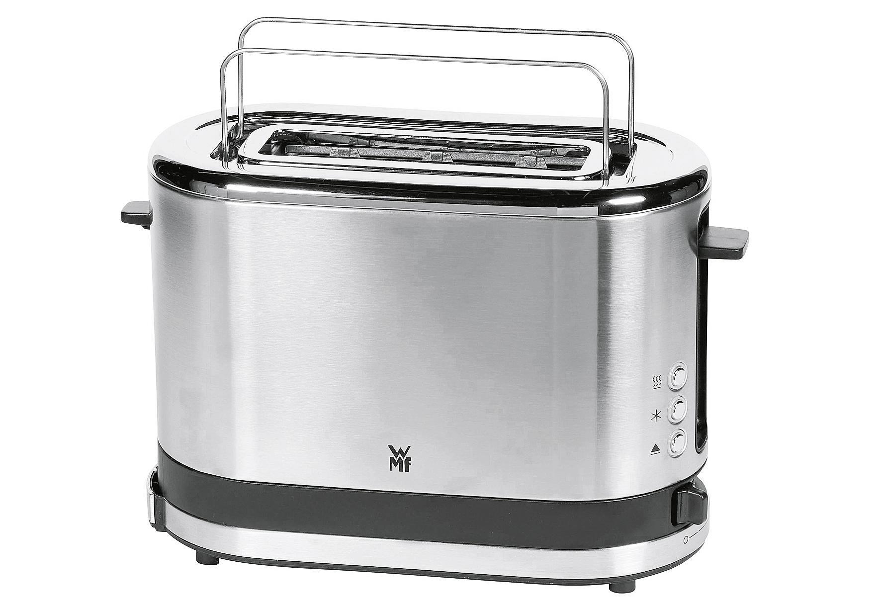 Ein wahres Platzwunder ist der WMF KÜCHENminis Toaster, der trotz seiner kompakten Maße sogar eine XXL-Scheibe Toast rösten kann. Die Brotzentrierungund die sieben variabel einstellbaren Bräunungsstufen sorgen für eine gleichmäßige Bräunung nach individuellem Geschmack. Mit dem integrierten Brötchenaufsatz können auch Croissants aufgebacken werden. Die Krümelschublade, die sich auf Druck leicht öffnen lässt, ermöglicht eineeinfache Reinigung.Attribute