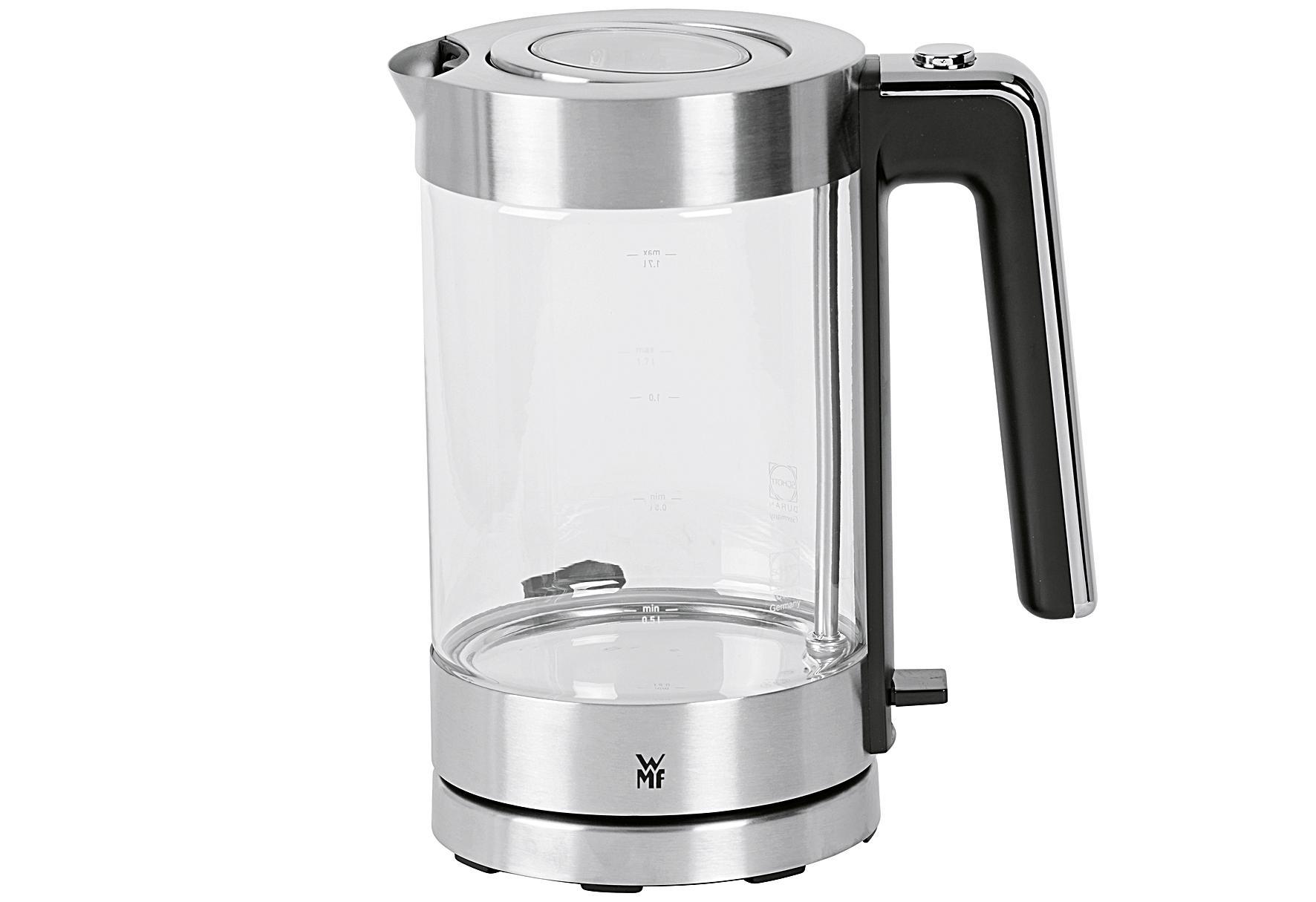 Der transparente Glaszylinder zeigt wie leistungsstarke 3.000 Watt das Wasser schnell zum Brodeln bringen. Schott DURAN® Glas bietet überzeugende Argumente: hitzebeständig, stabil, geschmacksneutralund ist leicht zu reinigen. Dieser außergewöhnliche, kabellose Wasserkocher bereitet bis zu 1,7 Liter heißes Wasser, das mit Hilfe der Wasserstandsanzeige abgemessen werden kann. Praktisch sind die Komfort-Einhanddeckelöffnung und der abnehmbare Deckel. Wie alle WMF Wasserkocher bietet auch die LONO Glasvariante Sicherheit durch Trockenlauf-, Überhitzungsschutz, Kochstoppautomatik und Deckelverriegelung. Mit der LONO Frühstücksserie ist WMF ein weiteres Design-Highlight gelungen. Die einheitliche Formensprache und edles Cromargan® schmeichelt jeder Küche und vermittelt ein einheitliches Bild auf der Arbeitsfläche. Die Serie besteht aus Wasserkocher, Toaster und je nach belieben eine Kaffeemaschine mit Aromaglaskanne oder Thermokanne sowie eine Kaffeepadmaschine zur Auswahl.Trockenlauf- und Überhitzungsschutz, Kochstoppautomatik, Deckelverriegelung