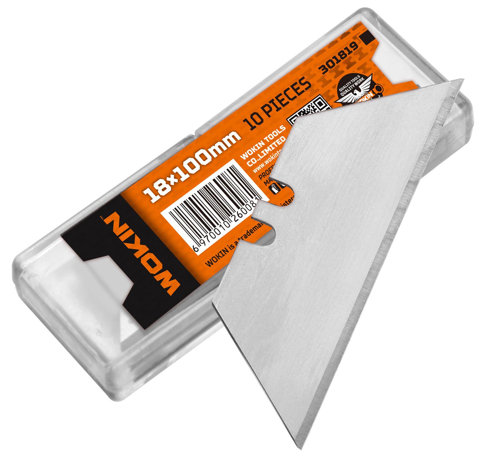 Das Klingen-Set von WOKIN besteht aus zehn Klingen aus hochwertigem Kohlenstoffstahl in einem praktischen Plastikspender