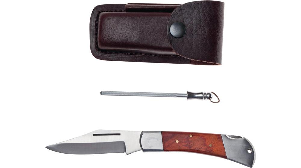 robustes Taschenmesser mit feststellbarer, rostfreier Klinge · Holzgriff · rostfreie BackenWeitere technische Eigenschaften: