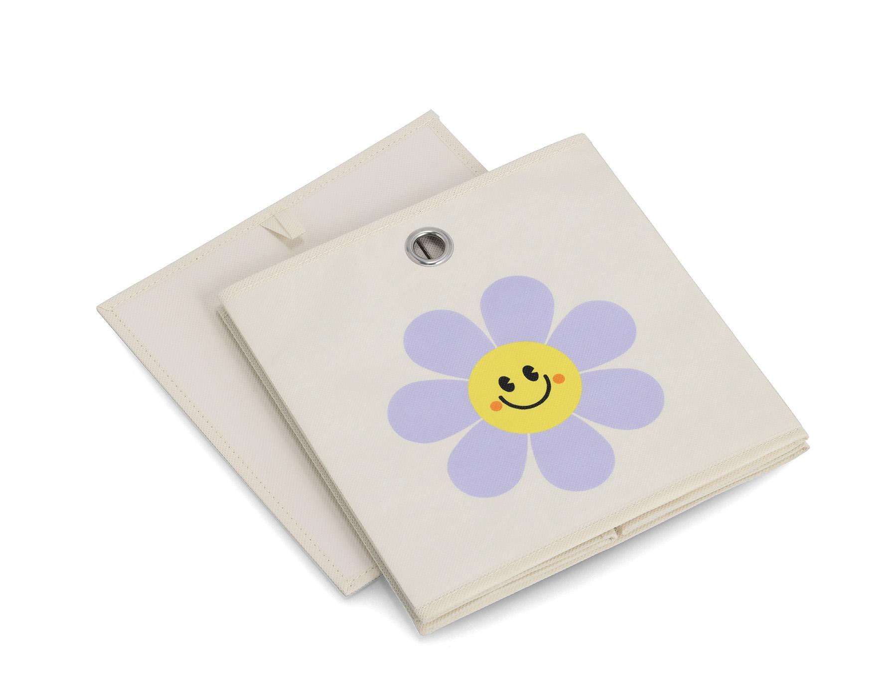 Bunt, fröhlich und superpraktisch – unsere Vliesbox mit „Happy Flower“-Motiv bringt gute Laune ins Kinderzimmer! Die farbenfrohen Blumen zaubern ein Lächeln ins Gesicht und machen das Aufräumen zu einem echten Kinderspiel. Ob Spielsachen, Bücher, Kuscheltiere oder Bastelsachen – in dieser stabilen Aufbewahrungsbox ist alles im Handumdrehen ordentlich verstaut. Perfekt für kleine Ordnungshelfer*innen mit großem Blumenherz!Attribute