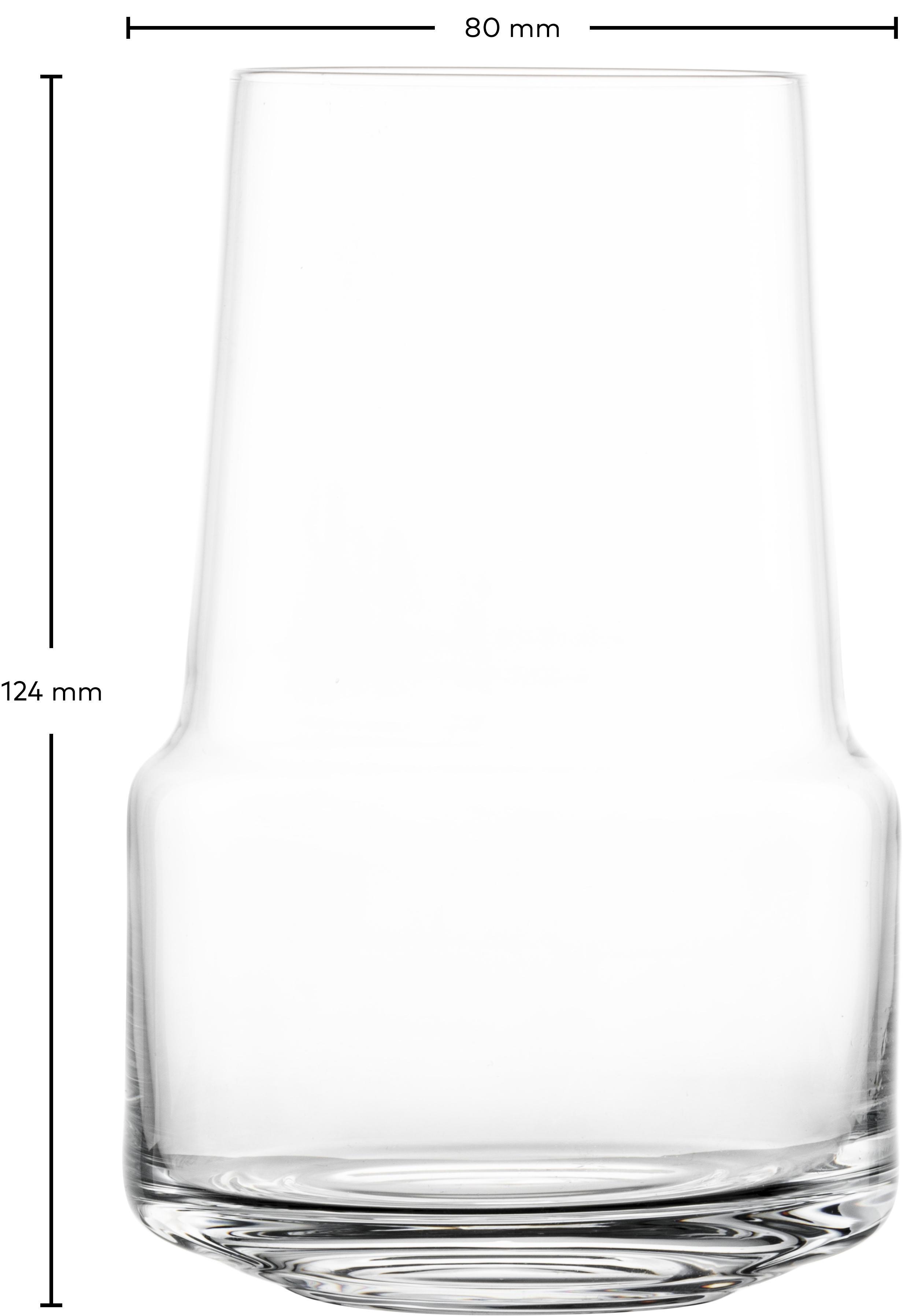 Bei dem Sekt Tumbler der ersten Weinbecherserie Level von Zwiesel Glas trifft Modernität auf Funktionalität. Die markante Kante im Glas hat nicht nur einen optischen Effekt, sondern sorgt für eine ideale Bündelung der Aromen von kohlensäurehaltigen Getränken. Durch den Moussierpunkt am Boden des ca. 12 cm hohen Sekt Tumblers Level wird die Perlage zu einem prickelnden Erlebnis. Das sensorisch getestete und hochfunktionale Becherglas verschafft neben Sekt auch Mischgetränken wie Cocktails und Softdrinks einen stilvollen Auftritt.Die erste Weinbecherserie Level von Zwiesel Glas wird in Deutschland aus Tritan®️-Kristallglas maschinell hergestellt und ist besonders langlebig, brillant, bruch- und spülmaschinenfest. Damit unterstreicht der Sekt Tumbler Level einzigartige Momente und alltägliche Situationen.