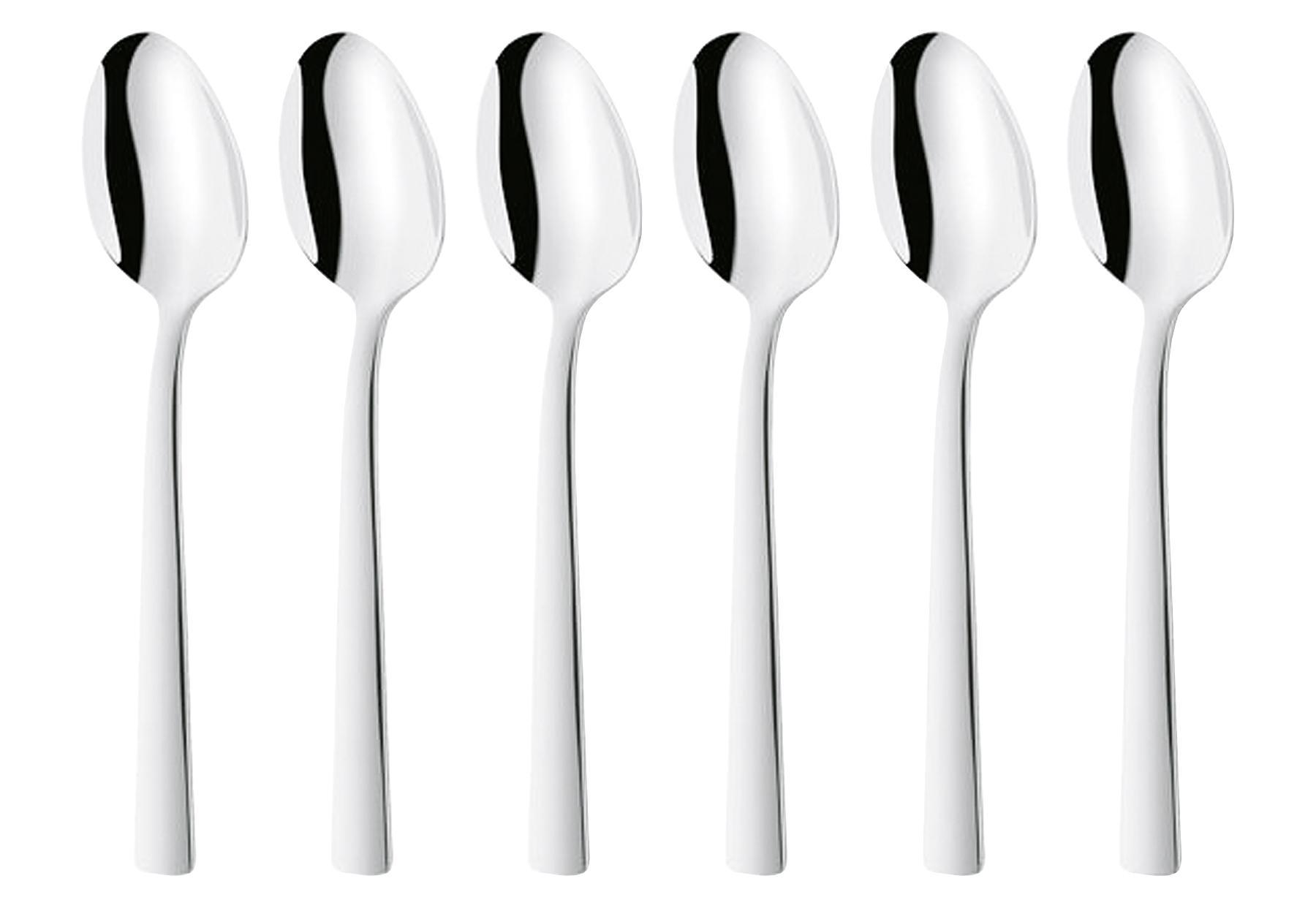Mit den sechs Kaffeelöffeln der Reihe Dinner können Sie Ihren Gästen Milch und Zucker problemlos in den Kaffee geben und gleichzeitig mit dem zeitlos eleganten Design überzeugen. Durch das verwendete Material, den 18/10-Edelstahl, sind die Löffel spülmaschinengeeignet. Zudem lässt der polierte Edelstahl die Löffel sehr edel wirken und macht sie geeignet für Kombinationen mit anderen Bestecksets. Mit diesem Produkt erhalten Sie sechs nützliche Helfer, die Ihre Kaffeetafel bereichern werden und Ihren Gästen gefallen.Lieferumfang: