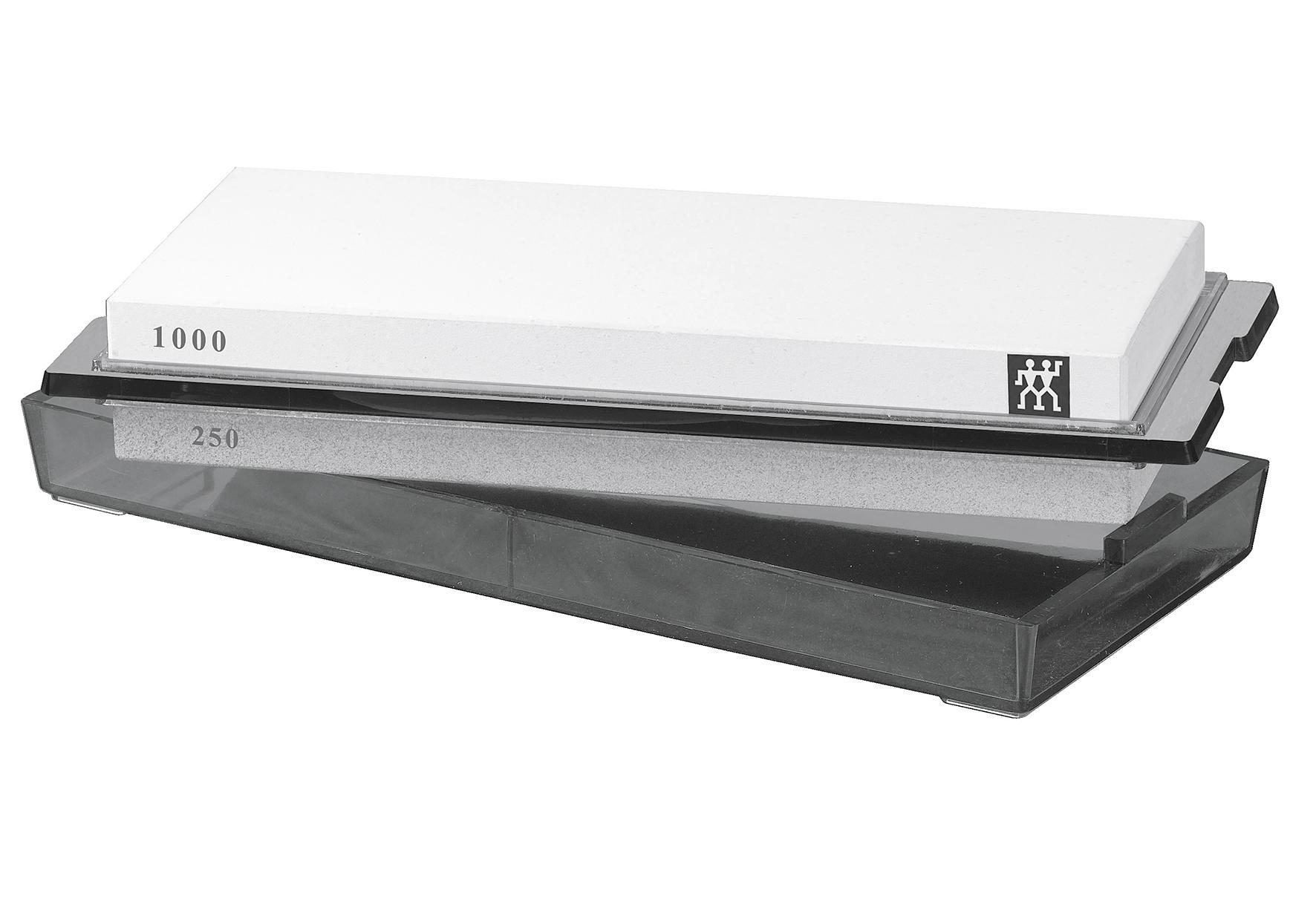 Je nach Beanspruchung werden auch ultrascharfe Messer mit der Zeit stumpfer und schneiden nicht mehr so gut wie am Anfang. Dann ist hilfreich, wenn du den praktischen ZWILLING Wetzstein zur Hand nehmen kannst. Mit einer Größe von 20 x 8,5 cm und einer Dicke von 4 cm ist er genau das, was benötigt wird, um strapazierte Klingen – mit oder ohne Wellenschliff – wieder scharf zu bekommen. Die eine Seite mit der gröberen Körnung ist für den sogenannten Vorabzug gedacht, die feinere für die finale Glättung der Klinge. So wirst du selbst zum Profi in Punkto Messerschleifen. Nur einige Male die Messerklinge über den handlichen Stein ziehen, und schon ist dein Lieblingsmesser wieder parat, um alles präzise zu schneiden: Gemüse, Kräuter oder Salat, Fleisch, Geflügel oder Fisch.